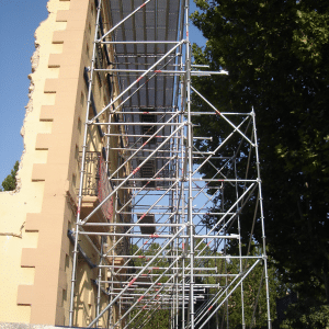 Dans ce post on souhaite de vous montrer une autre application pratique de notre système d’échafaudage certifié MEKA 48, pour travaux d’étançonnements et renforcements alternatifs en façades.