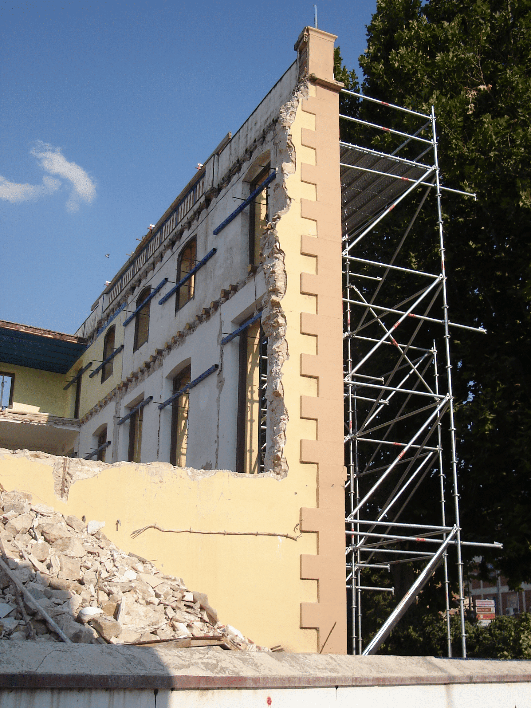 Finalement, ci-joint vous trouverez une gallérie ou vous pouvez voire différents travails d’étançonnement et renforcement de façades avec notre échafaudage multidirectionnel MEKA 48.