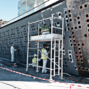 C’est la raison pour laquelle nous sommes très heureux de partager avec vous ces photos des derniers travaux de la façade extérieure, avec nos Roulants d’ Aluminium ALU 50. La gamme d’échafaudages roulants ALU 50 se caractérise par sa grande résistance et son faible poids, pour un maniement aisé et confortable, sans efforts, et un montage ultrarapide et simple. Par conséquent ils sont parfaits pour ces travaux.
